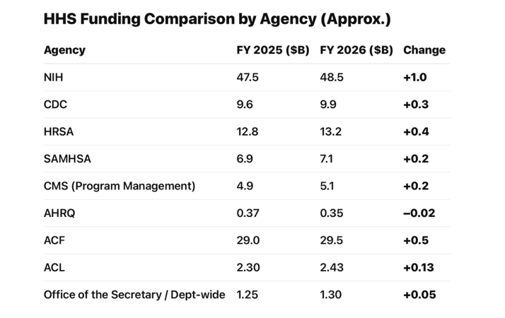 On January 20, 2026, draft text of the Consolidated Appropriations Act for fiscal year 2026 was released. The bill provides the funding and policy framework that will shape federal health programs for the coming year. For AMRC members, the legislation reflects a broader congressional strategy of stabilization rather than expansion—maintaining core research, public health, and health system functions while deferring larger structural reforms to future Congresses.